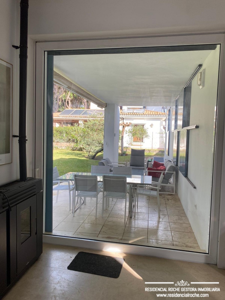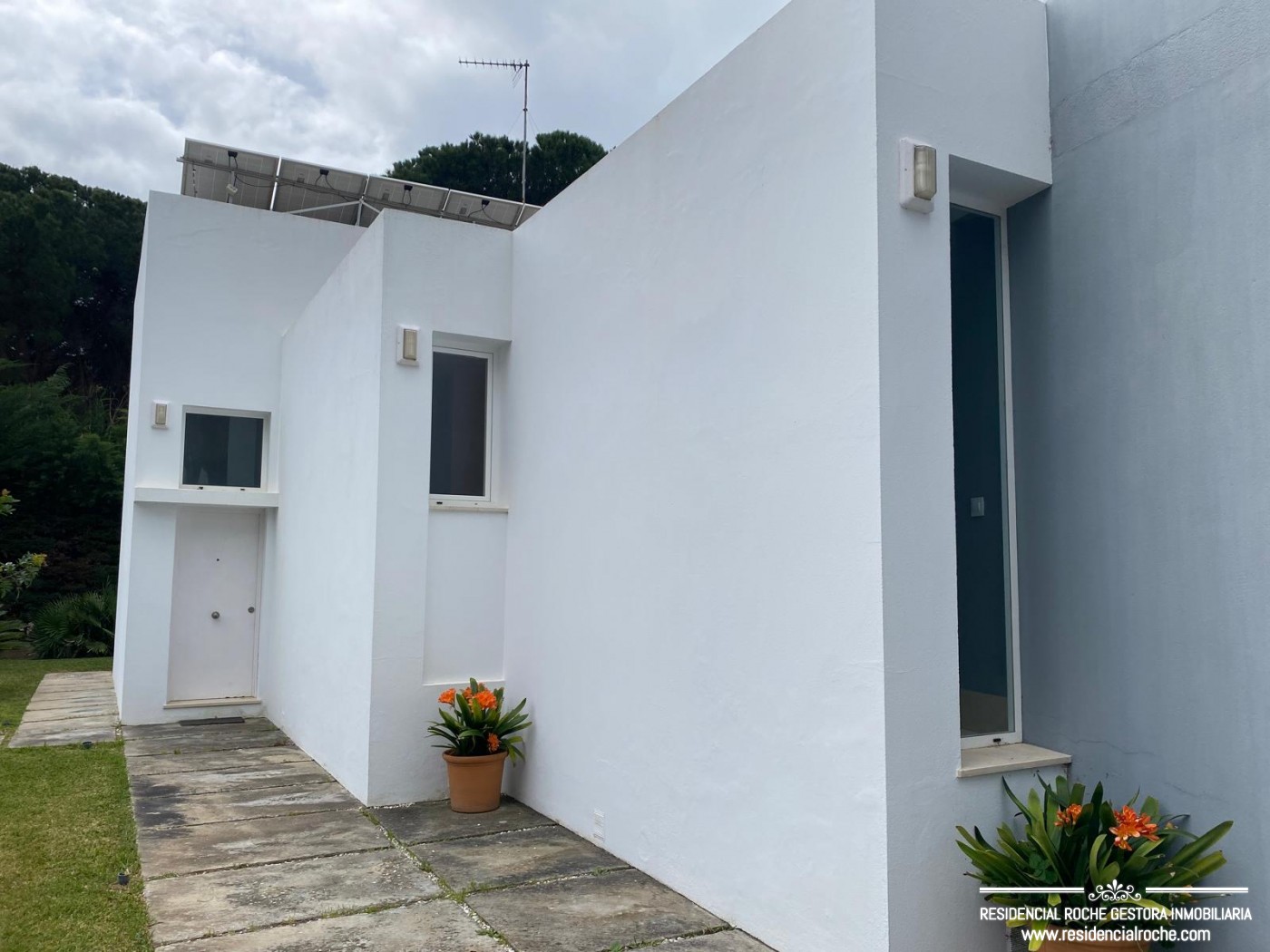 Precioso chalet independiente de una sola planta en Roche, concebido para disfrutar de la luz, la privacidad y el confort en un entorno privilegiado. La vivienda se asienta sobre una amplia parcela de 1.100 m², ofreciendo un equilibrio perfecto entre arquitectura, jardín y vida exterior.