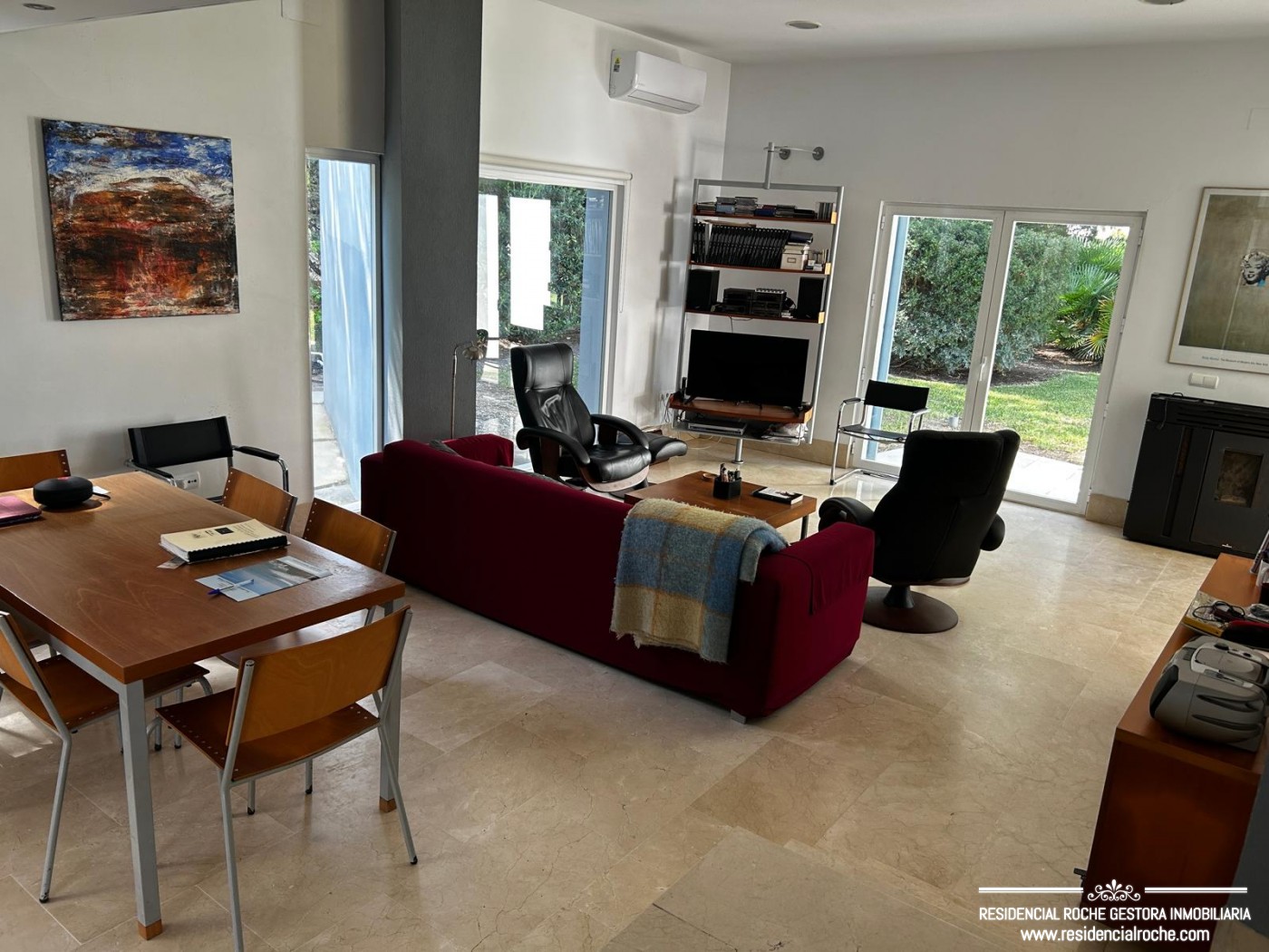 VENTA: 1.000.000€ Precioso chalet independiente de una sola planta en Roche, concebido para disfrutar de la luz, la privacidad y el confort en un entorno privilegiado. La vivienda se asienta sobre una amplia parcela de 1.100 m², ofreciendo un equilibrio perfecto entre arquitectura, jardín y vida exterior. El interior se distribuye de forma muy funcional, con tres dormitorios y dos baños completos, uno de ellos en suite en el dormitorio principal. Los espacios han sido diseñados con una clara vocación contemporánea, fruto de la visión de un arquitecto que apostó por líneas limpias, amplitud y conexión con el exterior, logrando una vivienda atemporal y plenamente vigente hoy. Destaca su porche cubierto, estratégicamente orientado y protegido de los vientos, creando un espacio ideal para disfrutar durante todo el año. El suelo de mármol climatizado aporta un extra de confort y eficiencia, complementado con sistema de aire acondicionado para garantizar una temperatura óptima en cualquier estación. La propiedad, además, ofrece posibilidad de ampliación, lo que añade un interesante potencial tanto para adaptarla a nuevas necesidades como para revalorizar la inversión. En conjunto, una vivienda cómoda, elegante y muy bien pensada, perfecta para quienes buscan calidad de vida en una de las zonas más demandadas de la costa gaditana. En un entorno natural maravilloso junto al mar y con un ambiente familiar donde se fomenta el deporte, la amistad y la naturaleza. Tipo de construcción: Diseño actual. Metros parcela: 1.050 m² Metros construidos: 151 m² Año construcción: 2001 SITUACION: Avd. Alemania De acuerdo con lo prevenido en el Decreto 218/2005, de 11 de octubre, se informa al cliente que los gastos notariales, registrales, ITP , financieros y honorarios de intermediación así como cualquier otro inherente a la compraventa, no están incluidos en el precio.